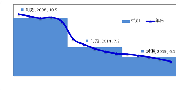 笔者及其合作者预测了要素市场的一些变化。劳动力市场已经明显显示出供给短缺的迹象,近年来不断上涨的工资可以提供证明(图5)。影子银行业务的发展,为“事实上的利率自由化”敞开了大门 。政府也一直在试图改革能源、水和其他资源的定价。简言之,低成本优势和改革政策是推动中国过去几十年经济成功的两个主要贡献因子,但前者正在急剧衰减。目前而言,最显著变化发生在劳动力市场上,尤其是刘易斯转折点的到来。