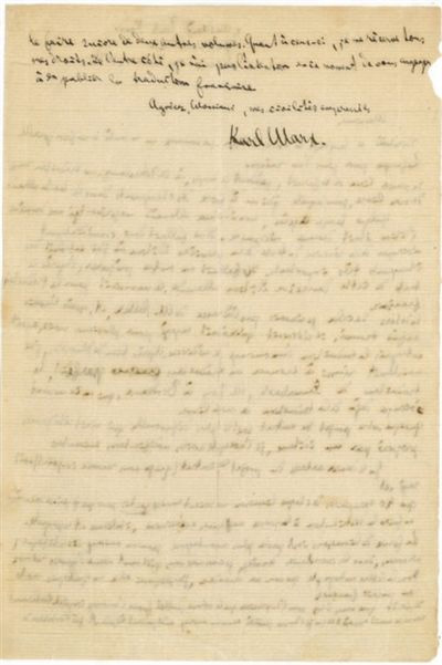 马克思写给《资本论》法文版出版人莫里斯·拉沙特尔的信的手迹。