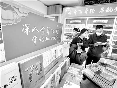 在全党开展党史学习教育,是牢记初心使命、推进中华民族伟大复兴历史伟业的必然要求。图为2021年3月6日,北京图书大厦等大型书店及各新华书店门店陆续上新《中国共产党简史》等主题出版物,引起读者的关注和阅读。(图片来源:人民视觉)