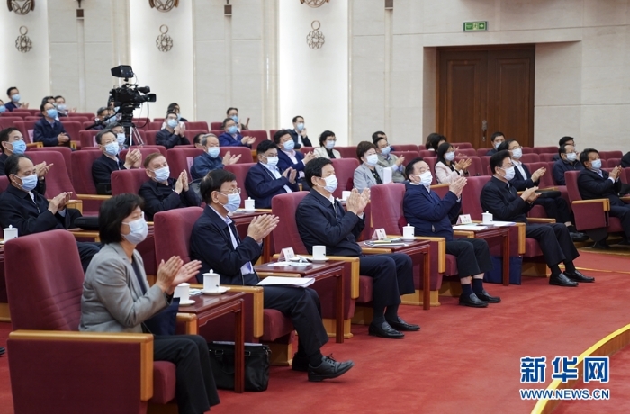 5月7日,全国人大常委会党组成员与人大机关党员干部在北京一起听取党史学习教育专题辅导报告。中共中央政治局常委、全国人大常委会委员长、党组书记栗战书出席。新华社记者 张领 摄