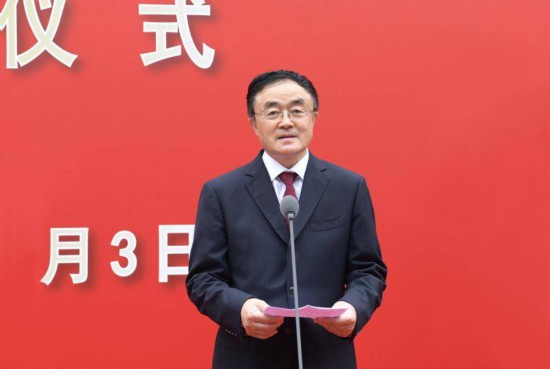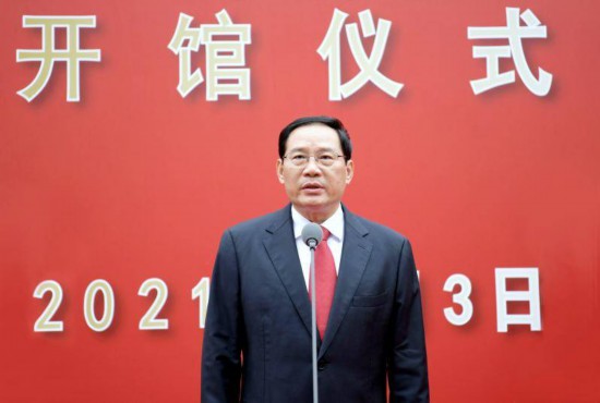 中央党史和文献研究院院长曲青山在开馆仪式上讲话。上海市委副书记、市长龚正主持。市人大常委会主任蒋卓庆、市政协主席董云虎、市委副书记于绍良出席。