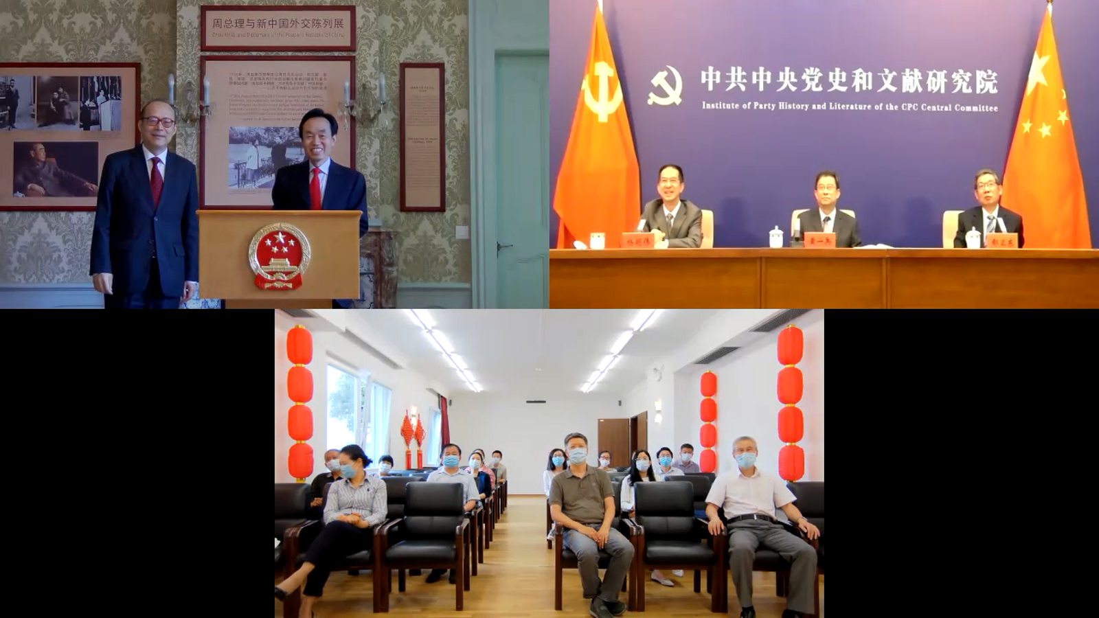 图4:中央党史和文献研究院领导线上出席“周总理与新中国外交陈列展”开幕式