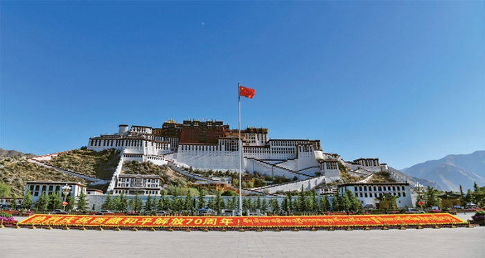 1951年5月23日,《中央人民政府和西藏地方政府关于和平解放西藏办法的协议》的签订,宣告西藏和平解放。2021年是西藏和平解放70周年。图为2021年5月23日的布达拉宫广场。 新华社记者 晋美多吉/摄