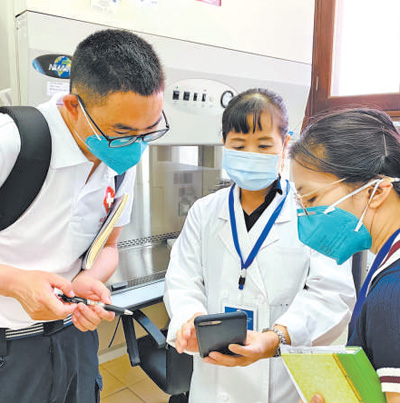 5月10日,中国抗疫专家组在老挝北部琅勃拉邦省医院指导疫情防控。