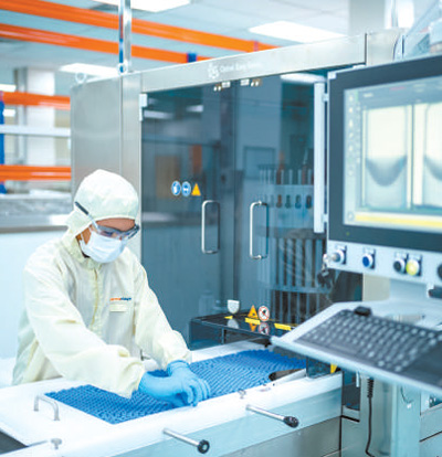 10月5日,在马来西亚吉隆坡郊区的发马公司灌装工厂,一名工人在科兴疫苗本地灌装生产线上工作。 新华社记者 朱 炜摄