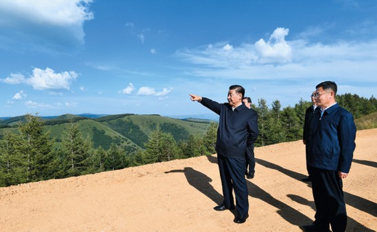 这是23日下午,习近平在塞罕坝机械林场月亮山考察 谢环驰摄/本刊