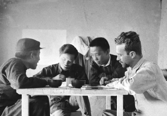 图片斯诺在陕北采访红军战士。新华社 / 发