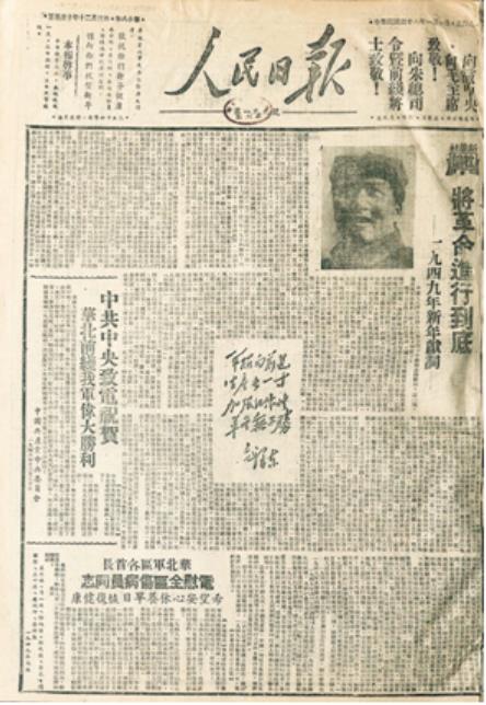 1949年1月1日,《人民日报》发表毛泽东写的新年献词《将革命进行到底》。