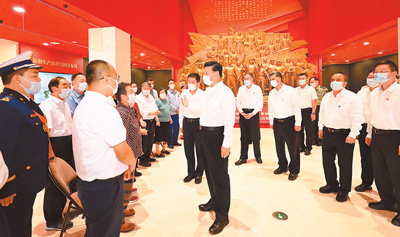 7月12日至15日,中共中央总书记、国家主席、中央军委主席习近平在新疆考察。这是13日下午,习近平在新疆生产建设兵团八师石河子市新疆兵团军垦博物馆,会见兵团老中青三代建设者代表。 新华社记者 李学仁摄