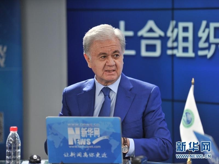 2017年6月27日,上海合作组织秘书长拉希德·阿利莫夫与新华网友在线交流。新华网 李清摄