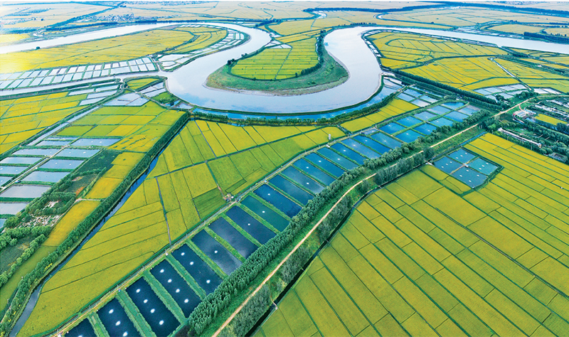 图为2022年8月26日,辽宁省盘锦市大洼区西安镇上口子村,蟹田相依,一片丰收景象。 人民图片 刘刚/摄