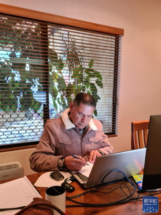 9月24日,澳大利亚共产党全国主席温尼·莫利纳在家中办公。