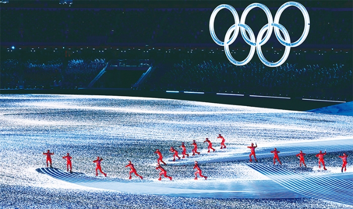 2022年2月4日晚,北京第二十四届冬季奥林匹克运动会开幕式在国家体育场举行。这是开幕式上的“致敬人民”环节。 新华社记者 李紫恒/摄