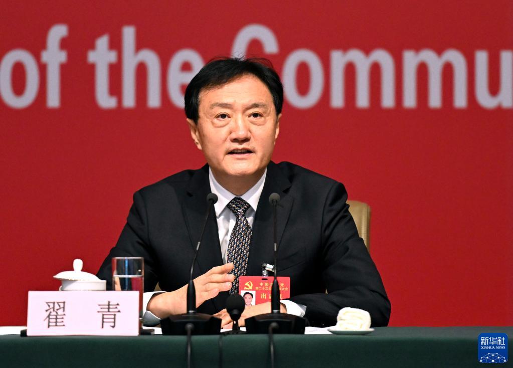 10月21日,中国共产党第二十次全国代表大会新闻中心举行记者招待会。生态环境部党组成员、副部长翟青围绕“建设人与自然和谐共生的美丽中国”主题与记者交流。新华社记者 宋彦桦 摄