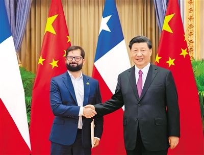 习近平指出,智利是首个同中国建交的南美国家。半个多世纪以来,中智关系作为中国同拉美和加勒比国家关系先行者,成为发展中国家合作共赢的典范,值得倍加珍惜。双方要继续坚定相互支持,尊重彼此人民选择的发展道路。中方愿同智方一道,推动中智全面战略伙伴关系继续发展。