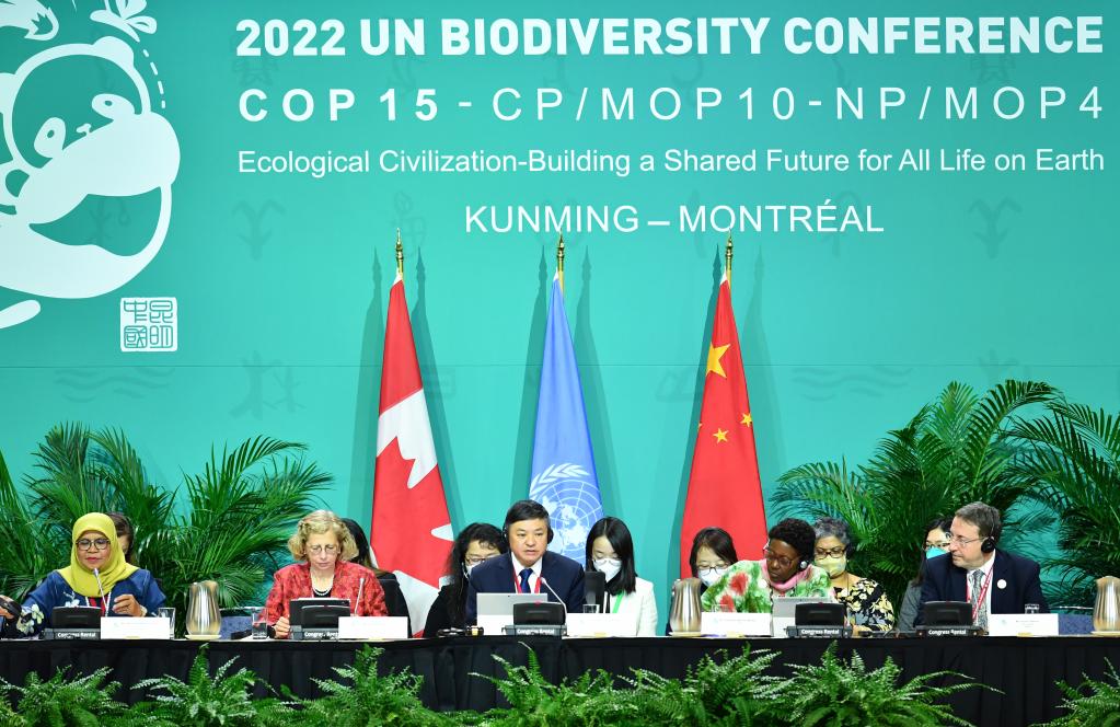 这是2022年12月15日在加拿大蒙特利尔拍摄的《生物多样性公约》第十五次缔约方大会(COP15)第二阶段高级别会议现场。(新华社记者连漪摄)