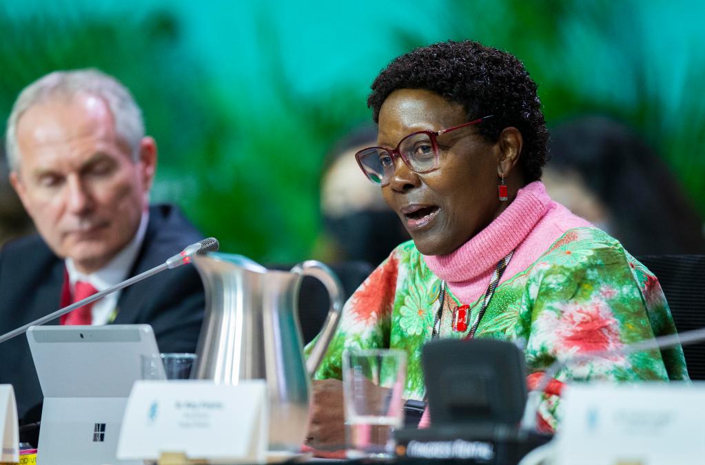 2022年12月15日,在加拿大蒙特利尔举行的《生物多样性公约》第十五次缔约方大会(COP15)第二阶段高级别会议上,《公约》秘书处执行秘书伊丽莎白·穆雷玛(右)发言。(新华社发,邹峥摄)