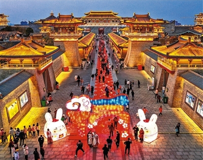 春节期间游客在湖北襄阳唐城春节庙会游览。杨东/摄(新华社发)