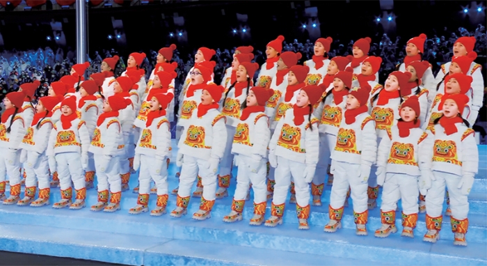 图为2022年2月4日,在北京冬奥会开幕式上,来自河北省阜平县的孩子们正在用希腊语演唱《奥林匹克颂》(视频截图)。阜平县在2020年2月整体脱贫前,是远近闻名的贫困县,阜平的脱贫是在中华大地上全面建成小康社会的一个生动缩影。 中央广播电视总台供图