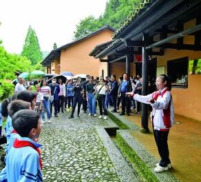 学生们在江西省井冈山茨坪毛泽东同志旧居参观研学。新华社发