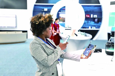 2022年11月14日,在安哥拉罗安达的华为安哥拉科技园区,到访嘉宾拍摄华为手机产品。新华社发