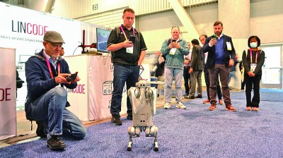 2023年美国拉斯维加斯消费电子展1月5日至8日举行。数百家参展中国企业展示了在屏幕显示、智能家居、人工智能、清洁能源等领域的诸多创新技术和产品,彰显“中国智造”的创新实力。图为1月6日,人们参观宇树科技展区。新华社发