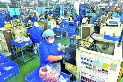 位于泰国罗勇府的泰中罗勇工业园是中国首批境外经贸合作区之一。图为2022年11月8日,在泰中罗勇工业园,工人在盾安金属(泰国)有限公司生产线上工作。新华社发