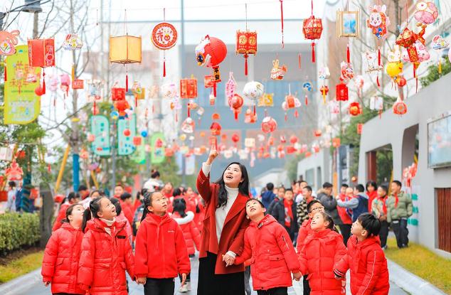 浙江省湖州市长兴县实验小学校园里高挂着学生们自制的各种灯笼,喜迎开学好时光。