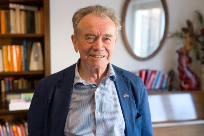 这是2019年2月25日拍摄的英国知名社会学家马丁·阿尔布劳在伦敦接受采访时的资料照片。(新华社记者韩冲摄)