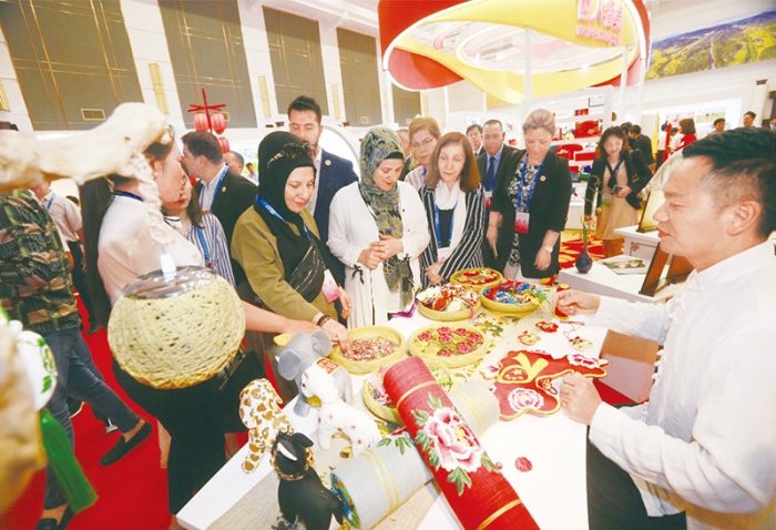2019年6月27日,“中国共产党的故事——习近平新时代中国特色社会主义思想在河南的实践”专题宣介会在河南兰考举行。图为与会外方代表近距离感受当地民俗文化的魅力。 中联部供图