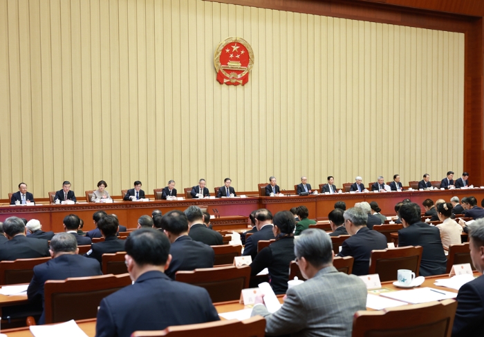 3月8日,十四届全国人大二次会议主席团在北京人民大会堂举行第二次会议。主席团常务主席赵乐际主持会议。 新华社记者 王晔 摄