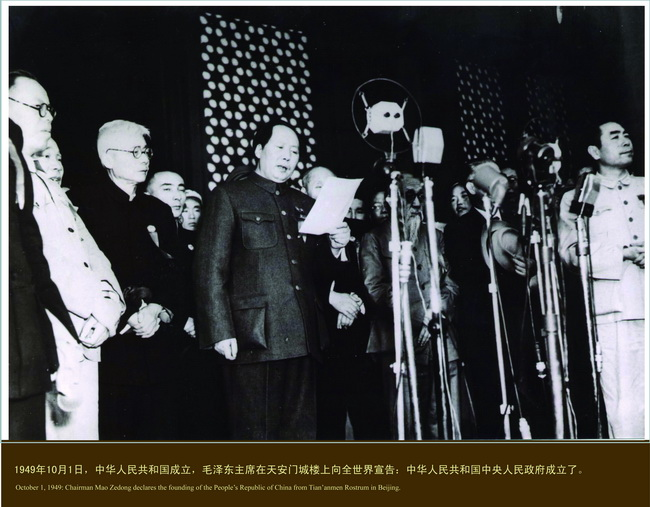 新中国的成立,标志着中国共产党领导的人民大众的反帝反封建的新民主主义革命的胜利,宣告中国人民从此站立起来了!它彻底结束了旧中国半殖民地半封建社会的历史,彻底结束了旧中国一盘散沙的局面,彻底废除了列强强加给中国的不平等条约和帝国主义在中国的一切特权,中国人民真正成为国家和社会的主人,实现了中国从几千年封建专制政治向人民民主的伟大飞跃。中华民族走上了实现伟大复兴的壮阔道路,“以勇敢而勤劳的姿态工作着,创造自己的文明和幸福,同时也促进世界的和平和自由”。