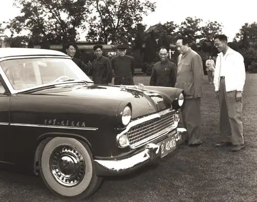 1958年5月21日,毛泽东主席在中共八大二次会议召开期间观看和试乘了由中国第一汽车制造厂生产的我国第一辆小轿车。
