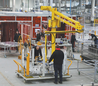 2月23日,中法合资公司员工在法国吕茨工业区的电池盒生产线上工作。 新华社记者 张百慧摄