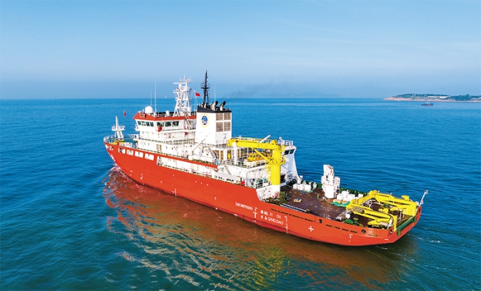 2024年6月24日,由我国自主设计、自主建造的新一代破冰调查船“极地”号交付。“极地”号搭载了多种海洋调查设备,能够承担海冰、三维水体、地球物理、大气等海洋环境的综合观测调查任务。图为2024年7月5日,中国第14次北冰洋考察队“极地”号破冰调查船从山东青岛奥帆中心码头启航出征。 人民图片 杨雪梅/摄