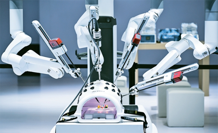 近年来,我国面向人民生命健康,在疾病防控、健康养老助残等领域持续提供科技支撑,不断丰富科技惠民产品和服务,提高人民生活品质。图为2025年3月14日在2025中国医学装备展览会上拍摄的手术机器人演示现场。 新华社记者 王全超/摄