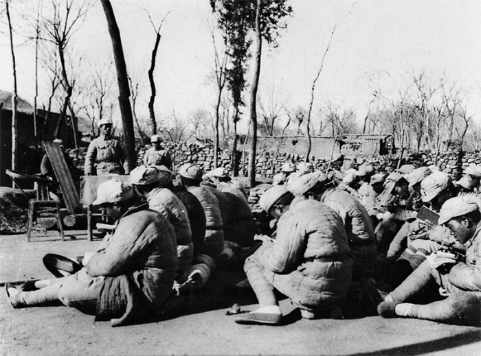 1938年,毛泽东同志在延安抗日军政大学回答“在抗大应当学习什么”时指出,“首先是学一个政治方向”。1939年在纪念抗大成立三周年时,毛泽东同志更是明确将“坚定正确的政治方向”确定为抗大首要的教育方针。图为在艰苦卓绝的环境中,抗大学员坚持学习。 《解放军画报》资料室供图
