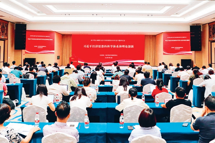 习近平经济思想对中国经济发展伟大实践进行了全面系统的理论总结,是立足当代中国、面向21世纪的经济理论,为构建21世纪政治经济学提供了根本遵循。2025年7月29—30日,由国家发展改革委主办的“深学笃行阐释习近平经济思想2025年会”在京召开。图为本次年会“习近平经济思想的科学体系和理论创新”专题研讨会现场。 习近平经济思想研究中心供图