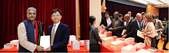 在座谈中,我院办公厅副主任、一级巡视员林小波向考察团成员专题介绍中国共产党二十届四中全会精神,第一研究部副主任戚义明围绕中国共产党的理论创新作主旨发言。双方还在互动交流中,围绕政党作用、生态保护、中拉合作、中非合作等话题,深入交换了看法。座谈交流后,牟建君向克里希纳赠送了《习近平关于中国式现代化论述摘编》英文版图书。