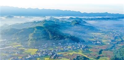 湖南湘西土家族苗族自治州龙山县召市镇晨雾缭绕,美不胜收。