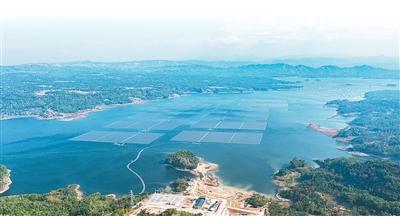 中国企业承建的印度尼西亚芝拉塔漂浮光伏发电项目远景。