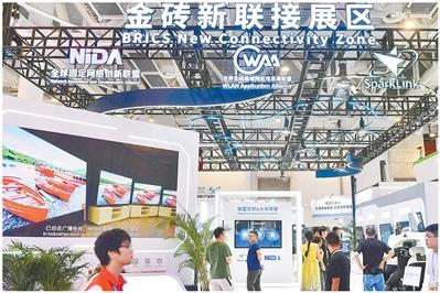 以“携手构建高质量伙伴关系,开启新型工业化合作新征程”为主题的2024金砖国家新工业革命展在福建厦门国际会展中心举行。图为观众在展馆内参观。