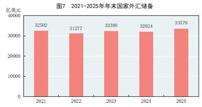 年末国家外汇储备33579亿美元,比上年末增加1555亿美元。全年人民币平均汇率为1美元兑7.1429元人民币,比上年贬值0.3%。(见图7)