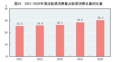 初步核算,全年能源消费总量61.7亿吨标准煤,比上年增长3.5%。煤炭消费量增长0.1%,原油消费量增长3.6%,天然气消费量增长2.0%,电力消费量增长5.0%。煤炭消费量占能源消费总量比重为51.4%,比上年下降1.8个百分点;天然气、水电、核电、风电、太阳能发电等清洁能源消费量占能源消费总量比重为30.4%,上升1.8个百分点。重点耗能工业企业单位电石综合能耗下降0.7%,单位合成氨综合能耗下降2.3%,吨钢综合能耗上升1.9%,单位电解铝综合能耗下降0.9%,每千瓦时火力发电标准煤耗与上年持平。初步测算,扣除原料用能和非化石能源消费量后,全国万元国内生产总值能耗[88]比上年下降5.1%。全国碳排放权交易市场碳排放配额[89]成交量2.35亿吨,成交额146.3亿元。(见图25)