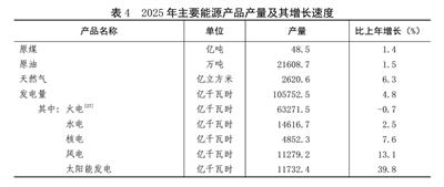 初步核算,全年一次能源生产总量51.3亿吨标准煤,比上年增长3.6%。(见表4)