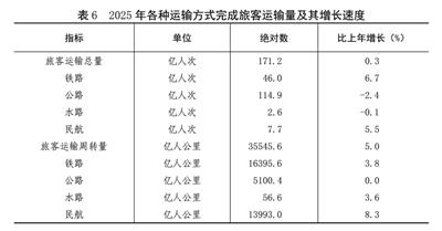 [32]2025年调整网约车载客系数,相应对出租汽车城市客运量等指标本年度及上年同期数据进行调整。2025年旅客运输总量、旅客运输周转量、公路旅客运输量、公路旅客运输周转量增速按可比口径计算。