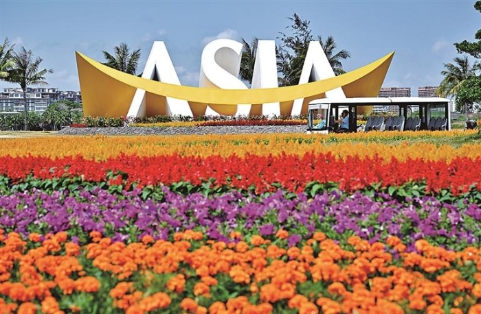 博鳌东屿岛上的博鳌亚洲论坛年会主题造景。新华社发